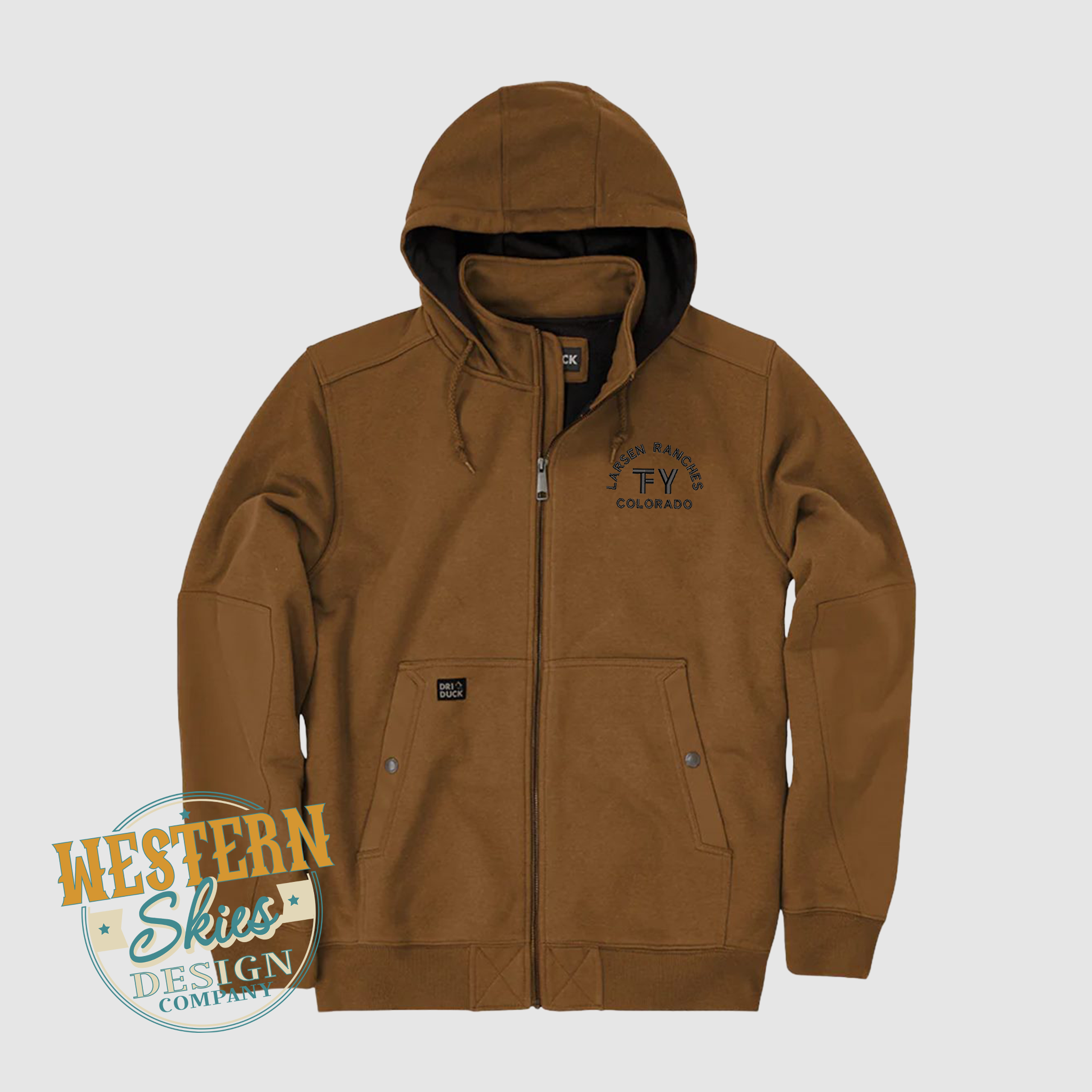 We add your custom embroidered logo or livestock/ranch brand to premium brand apparel.